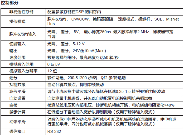 - 輸入信號平滑處理,自動微步計算,即使在低細分下也能保證運行平滑